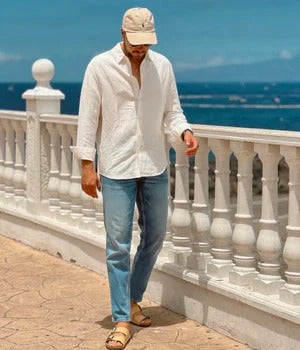 Crafted from luxurious linen, these men’s pants will quickly become your signature style. Impeccably tailored with an adjustable drawstring waist and a pleated design, they exude effortless class and sophistication. Experience unparalleled comfort and exceptional quality in this timeless design, perfect for everyday wear.